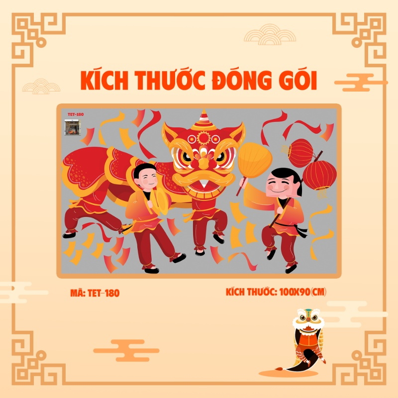 Decal tết gia đình ngựa và thần tài múa lân đón xuân