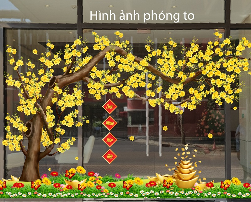Decal tết hoa mai vàng dán kính