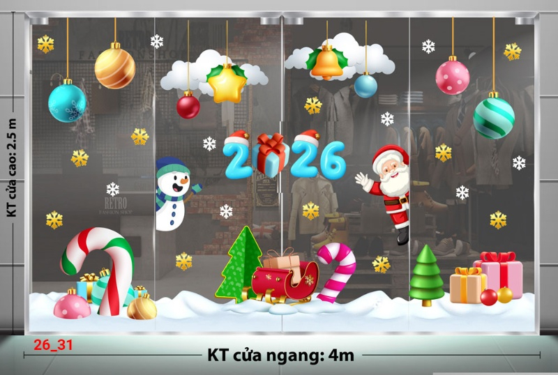 Decal Decal dán kính Noel Combo số 31 dùng trong Decal Noel dán kính