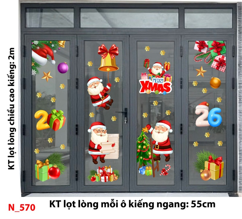Decal Decal dán Noel 570 cửa 4 cánh dùng trong Decal Noel dán kính