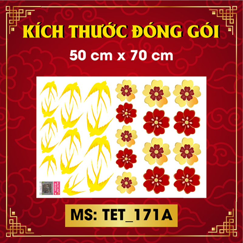 Decal tết chữ chúc mừng năm mới và chim én vàng