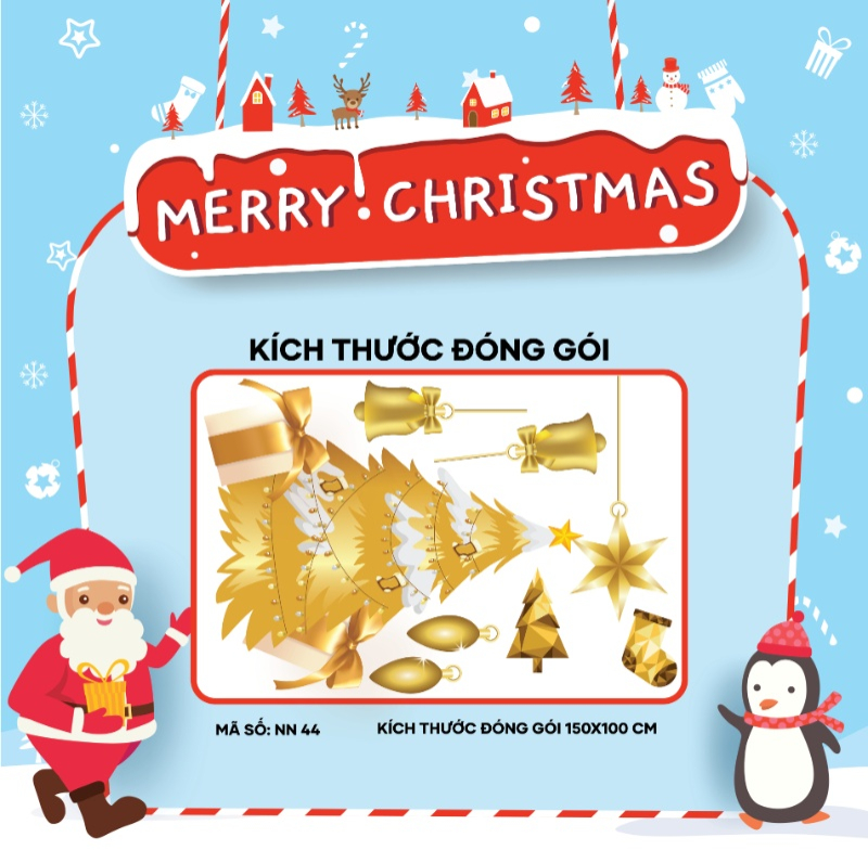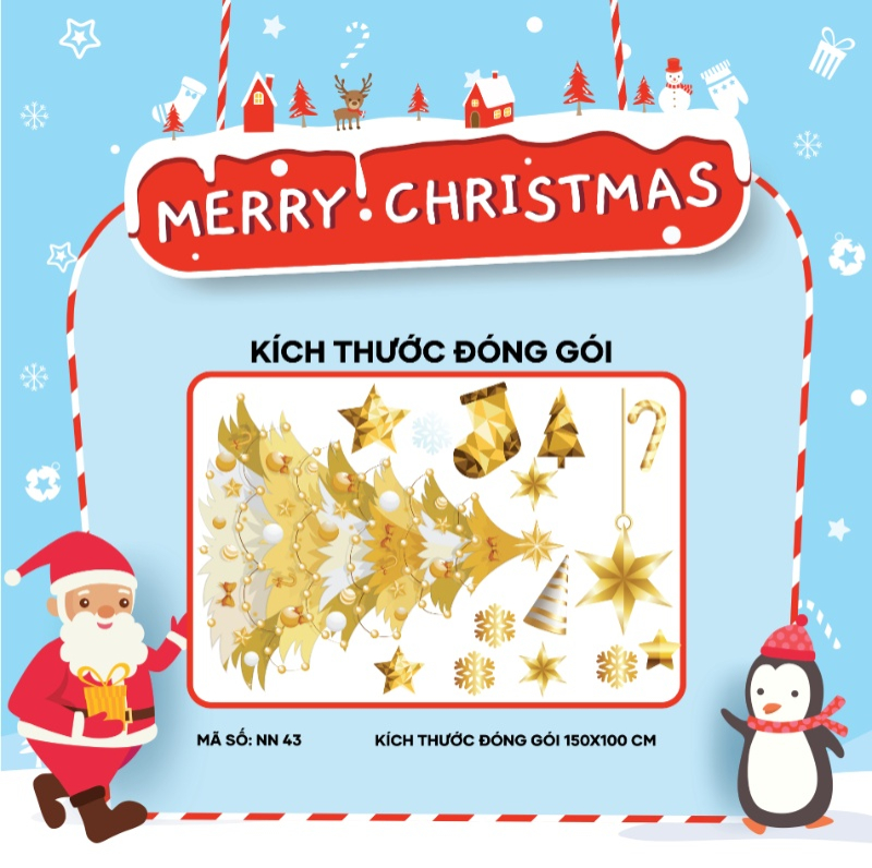 Decal noel vàng 2 ông già noel vui đùa đón giáng sinh 2025