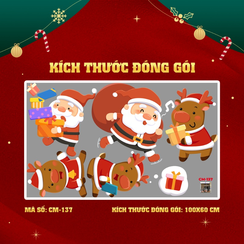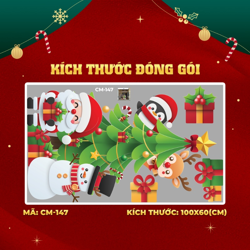 Decal noel 2025 mừng năm mới 2026 dán kính 3m