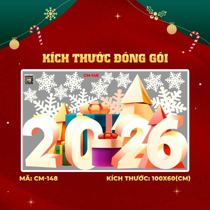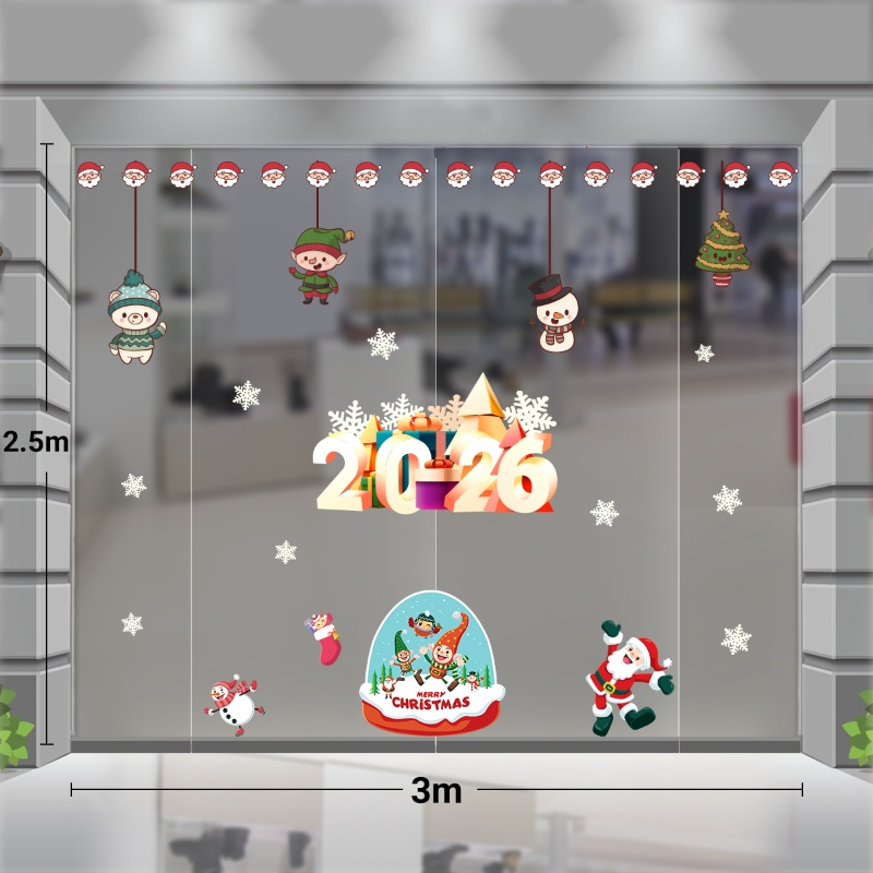 Decal noel 2025 - Dán kính 3m ông già noel và cây thông