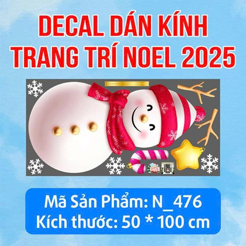 Decal noel người tuyết và chim cánh cụt dán cửa kính 2m
