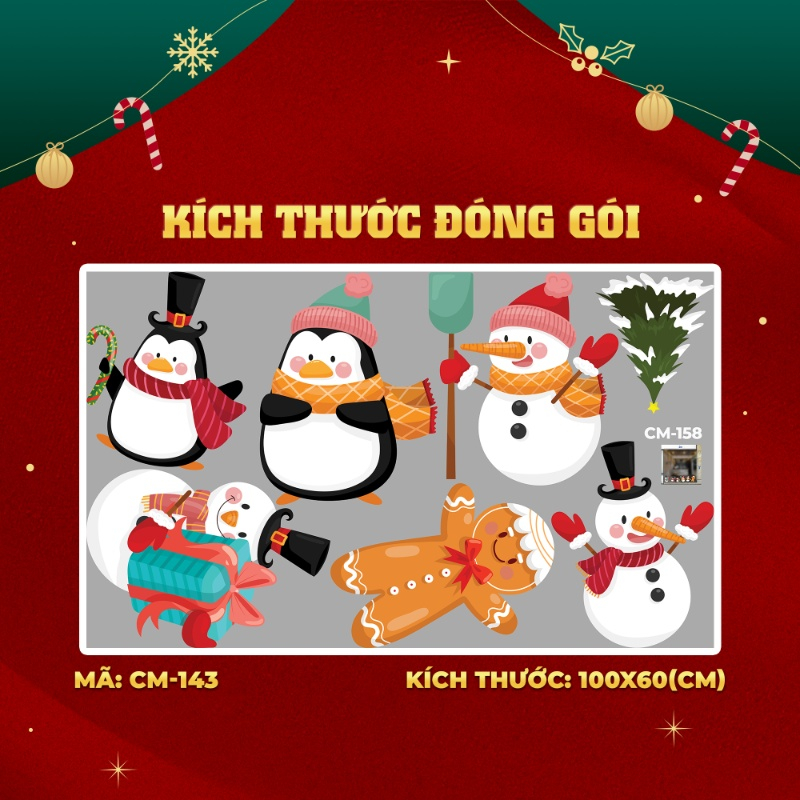 Decal noel ông già noel vui bên người tuyết và chim cánh cụt dán kính 2m