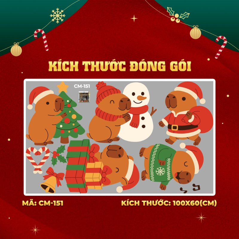 Decal ông giá noel và người tuyết bên quà giáng sinh dán kính 2m 3m