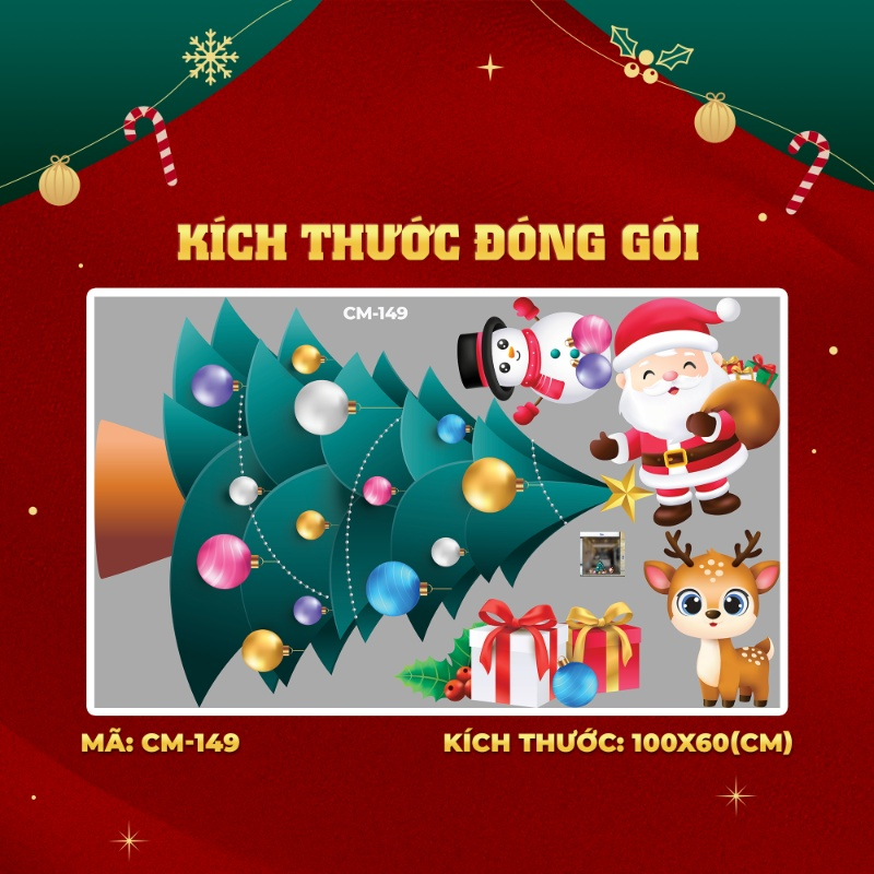 Decal noel 2025 mừng năm mới 2026 dán kính 3m