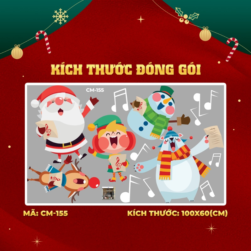 Decal noel chữ merry christmas bánh quy và ông già dán kính 2m