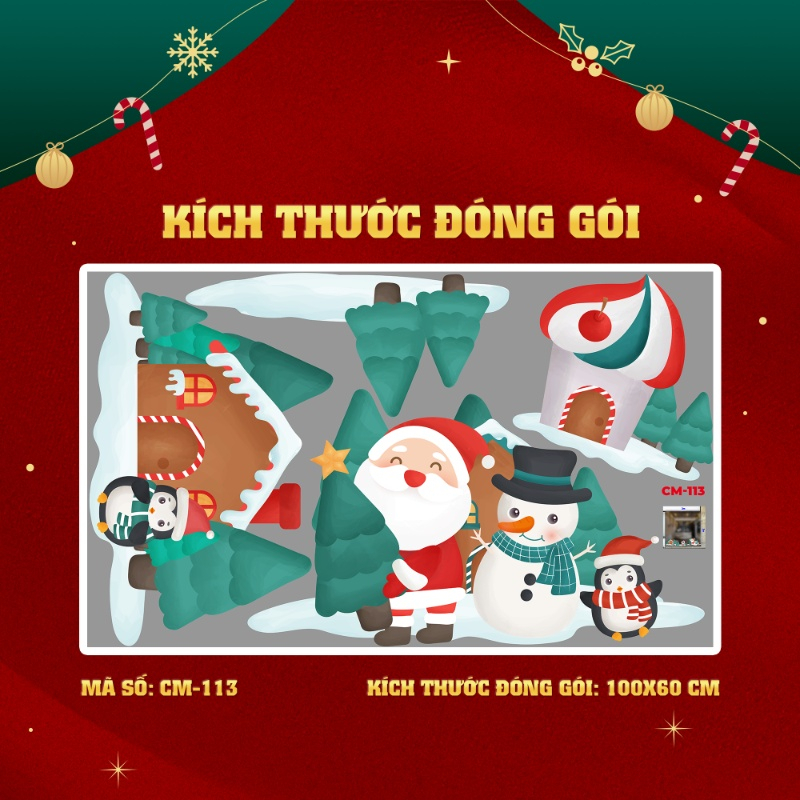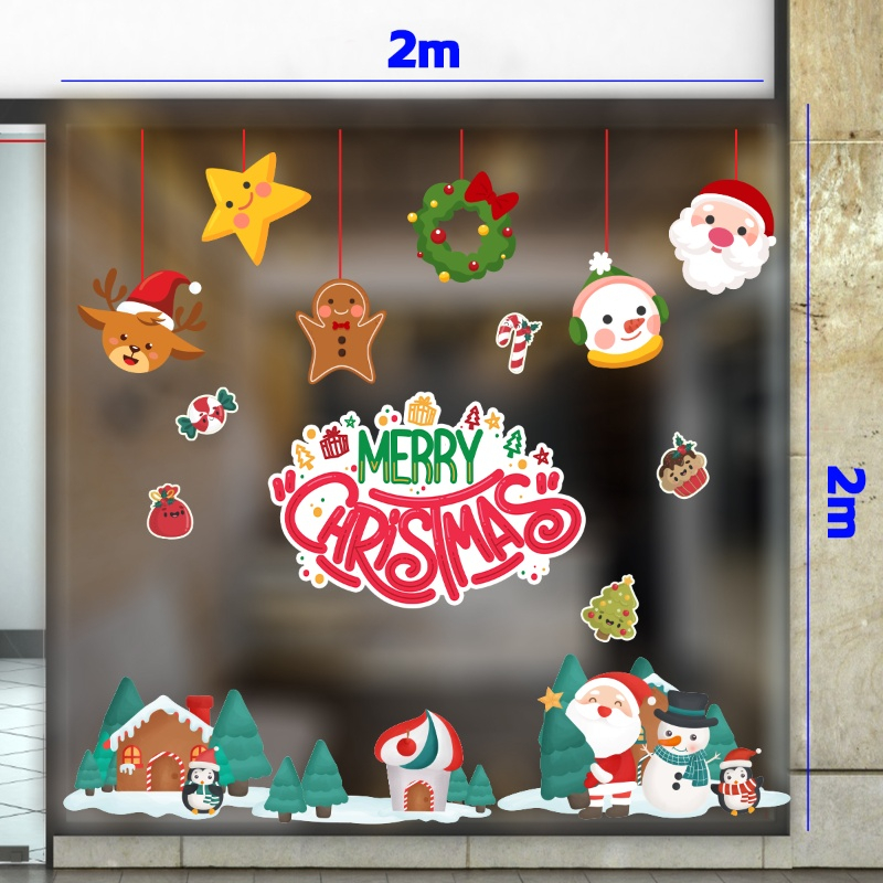 Decal noel 2025 - Dán kính 3m ông già noel và cây thông