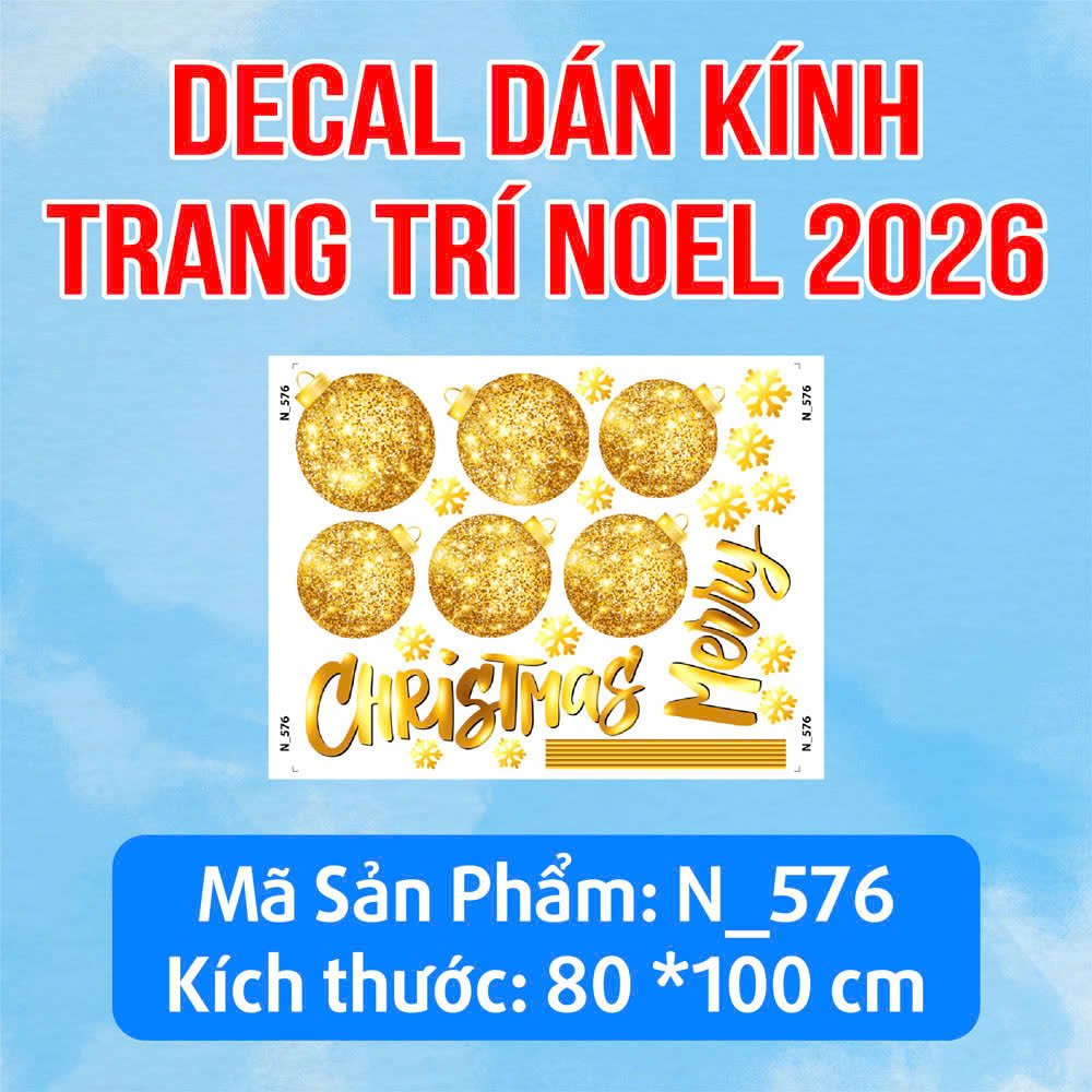 Decal noel trang trí kính dây treo quả châu 577