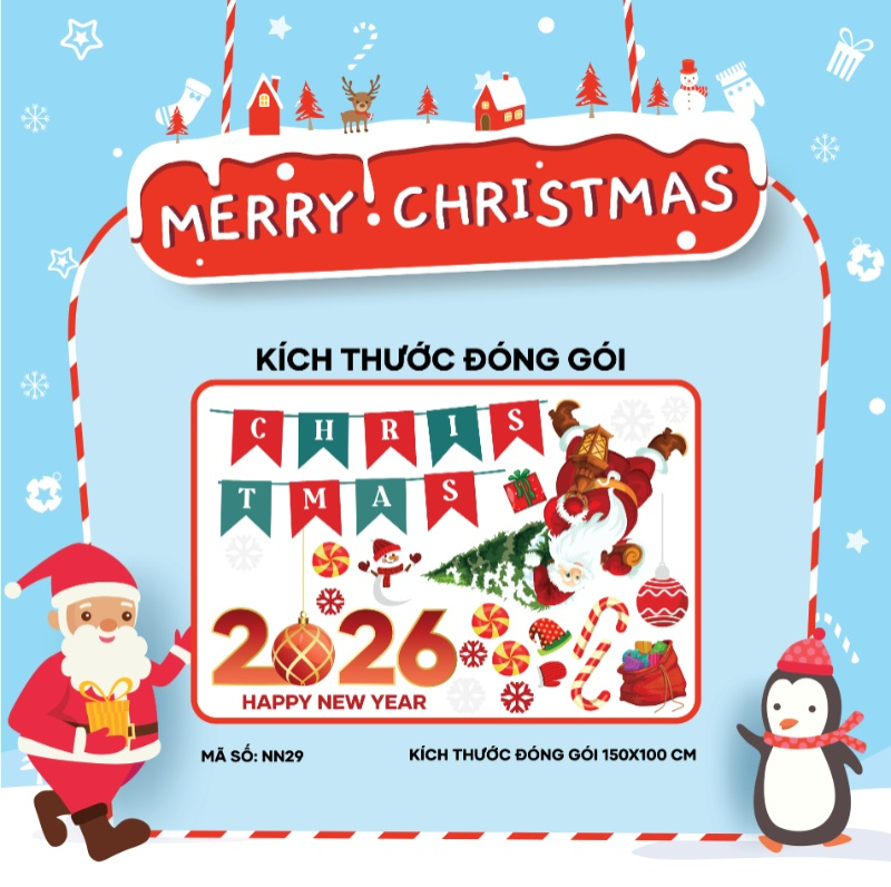 Video chi tiết sản phẩm Decal ông giá noel cầm cây thông vui năm mới 2026