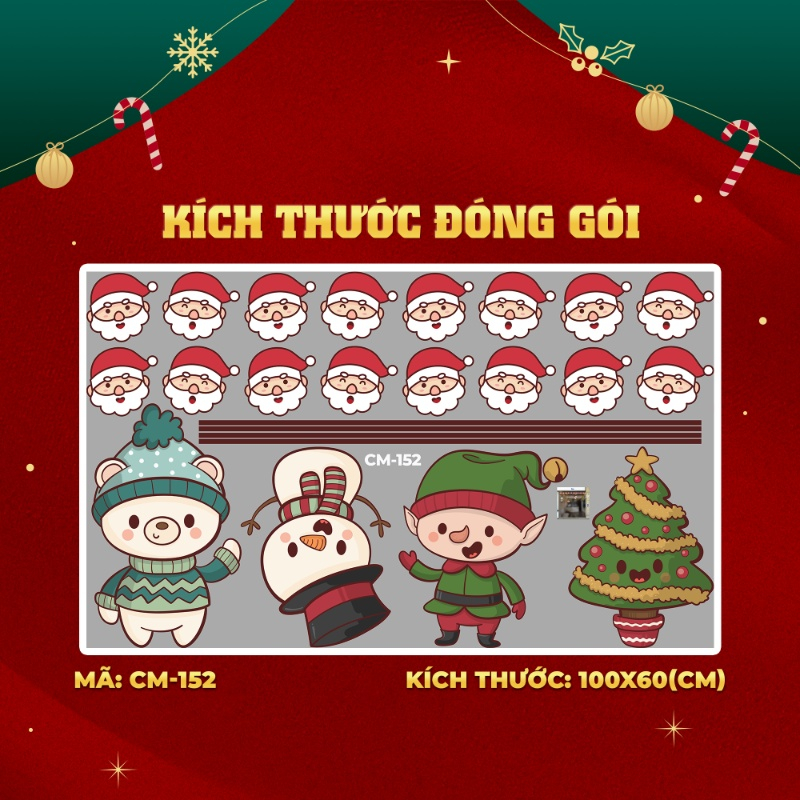 Decal noel 2025 mừng năm mới 2026 dán kính 3m
