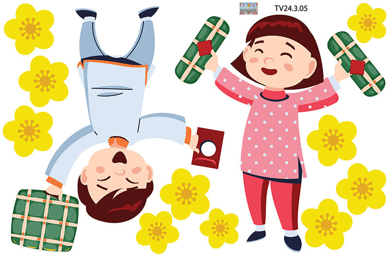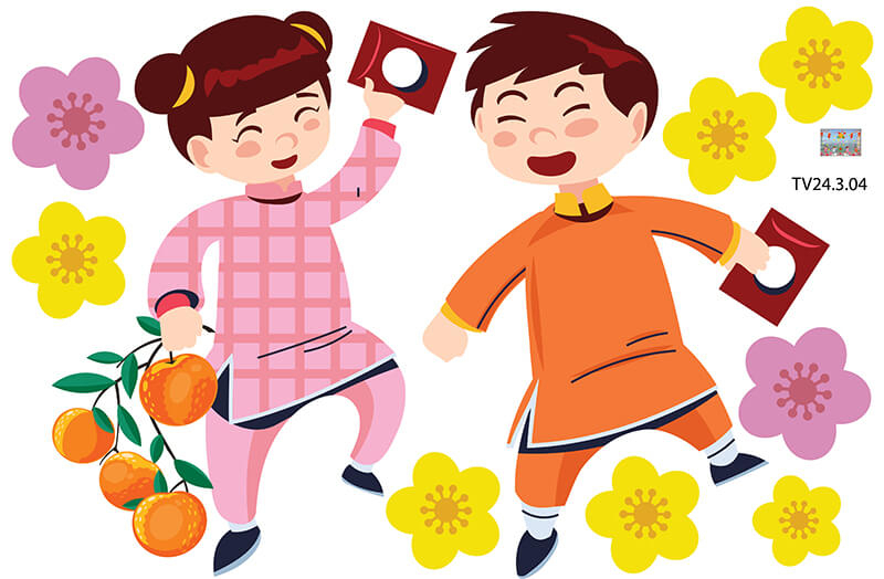 Decal tết 2024 - Thần tài đón xuân cùng bé múa lân
