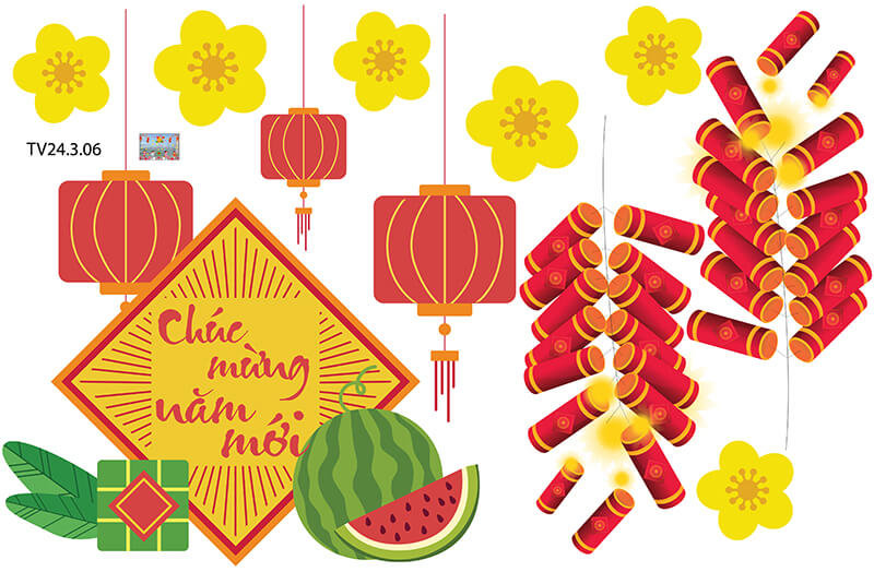 Decal tết 2024 - Dán kính mừng xuân giáp thìn