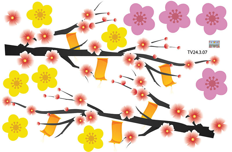Decal tết chữ chúc mừng năm mới và chim én vàng