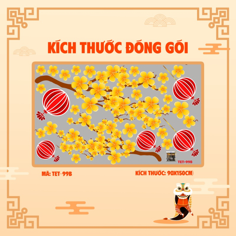 Decal tết dán cửa kính 6 mét ra vào chung cư thần tài múa lân sư rồng đón xuân