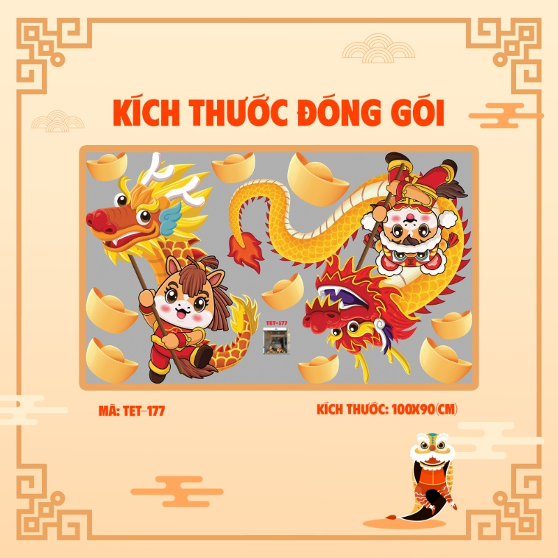 Decal tết bính ngọ đánh trống múa rồng vàng đón xuân