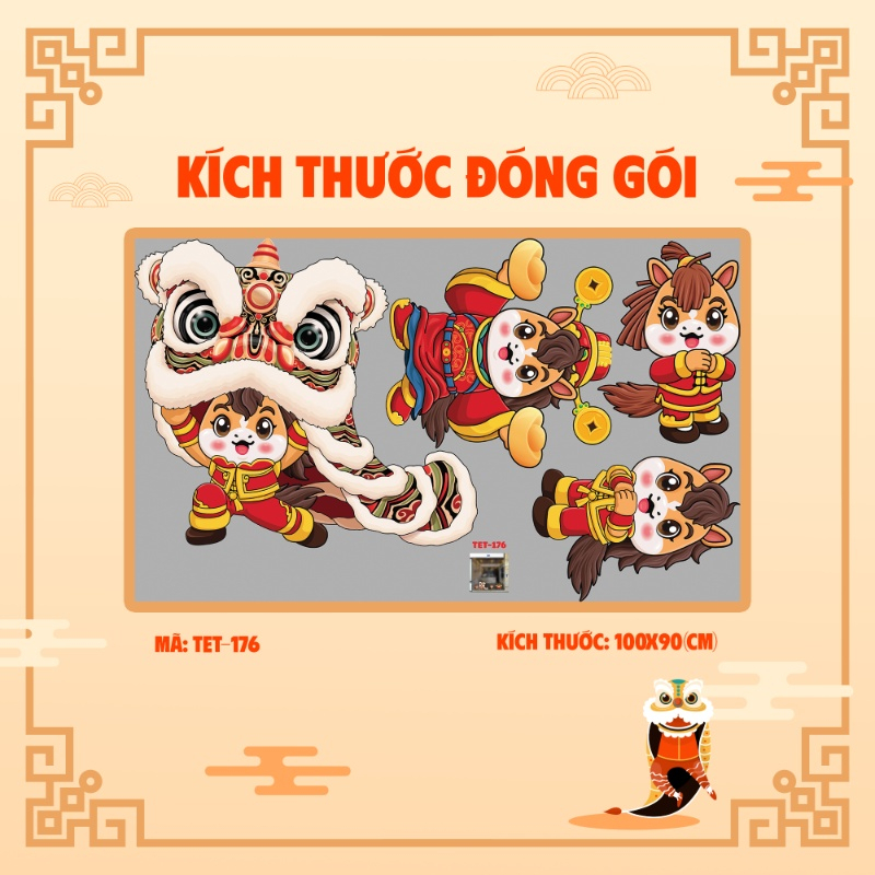 Decal chữ chúc mừng năm mới 2026 3 bé ngựa múa rồng dán cửa kính