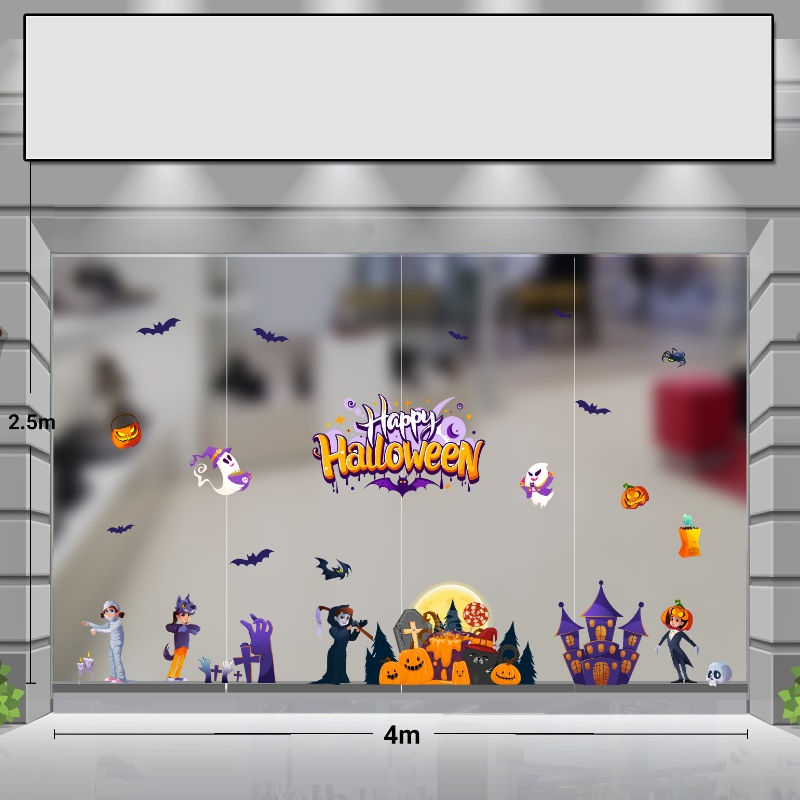 Decal trang trí halloween combo 4m lâu đài và bóng ma