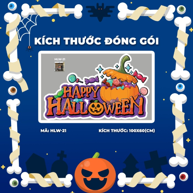 Decal Decal trang trí halloween cửa kính quả bí vàng và phủ thủy dùng trong Decal halloween