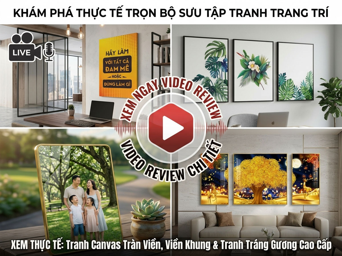 Tương tự như tranh canvas tràn viền nhưng có gắn khung composite dày 0.5 đến 3cm