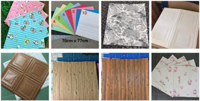 Ngoài ra, xốp 3D dán tường có thể được thiết kế với các kiểu hoa văn, hình ảnh, màu sắc khác nhau để tạo ra các hiệu ứng phong cách khác nhau cho các không gian nội thất, làm cho căn phòng trở nên đặc biệt hơn. Xốp dán tường có độ dày từ 0,5 đến 2 cm và được sản xuất với các kích thước khác nhau để người dùng dễ lựa chọn.
